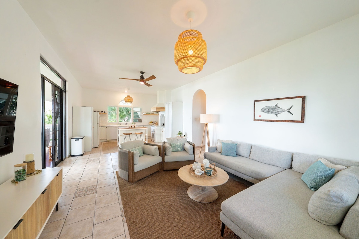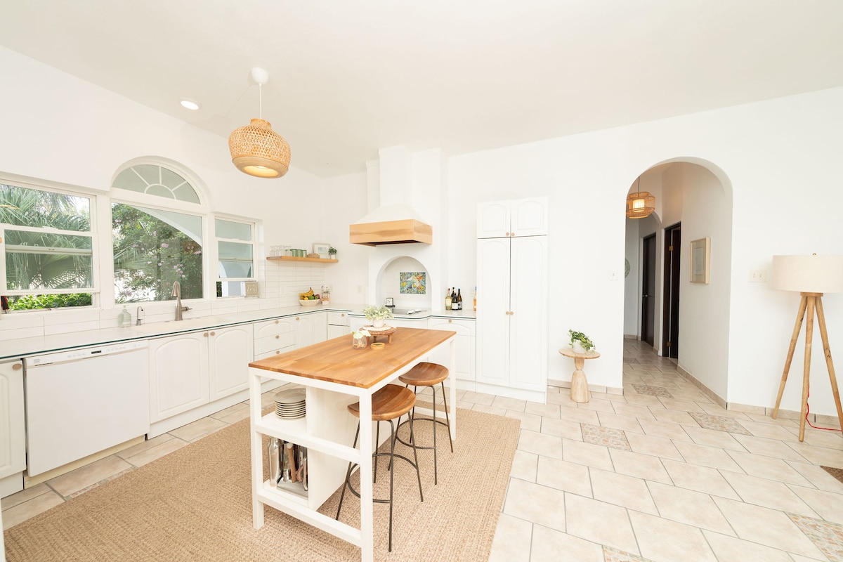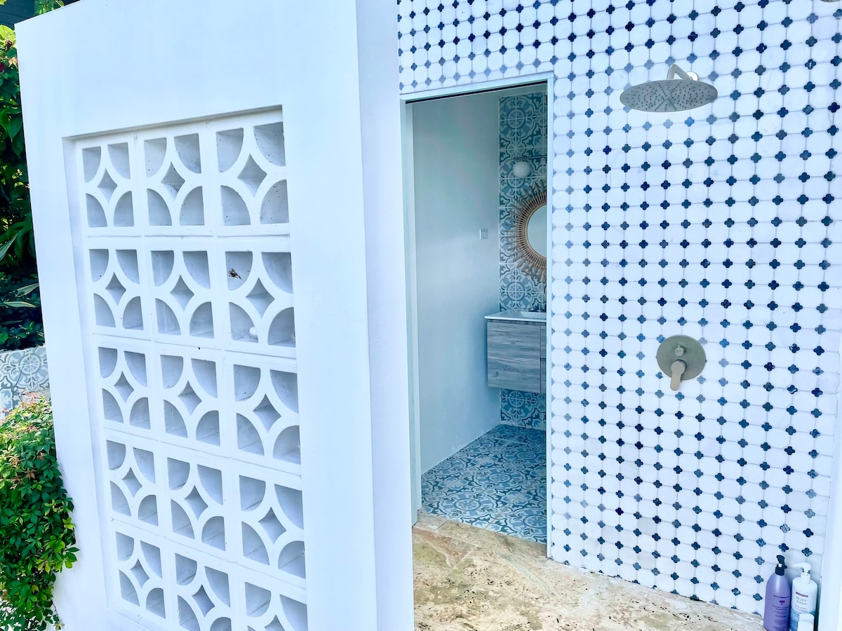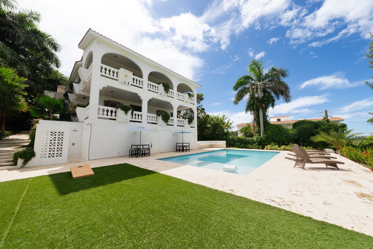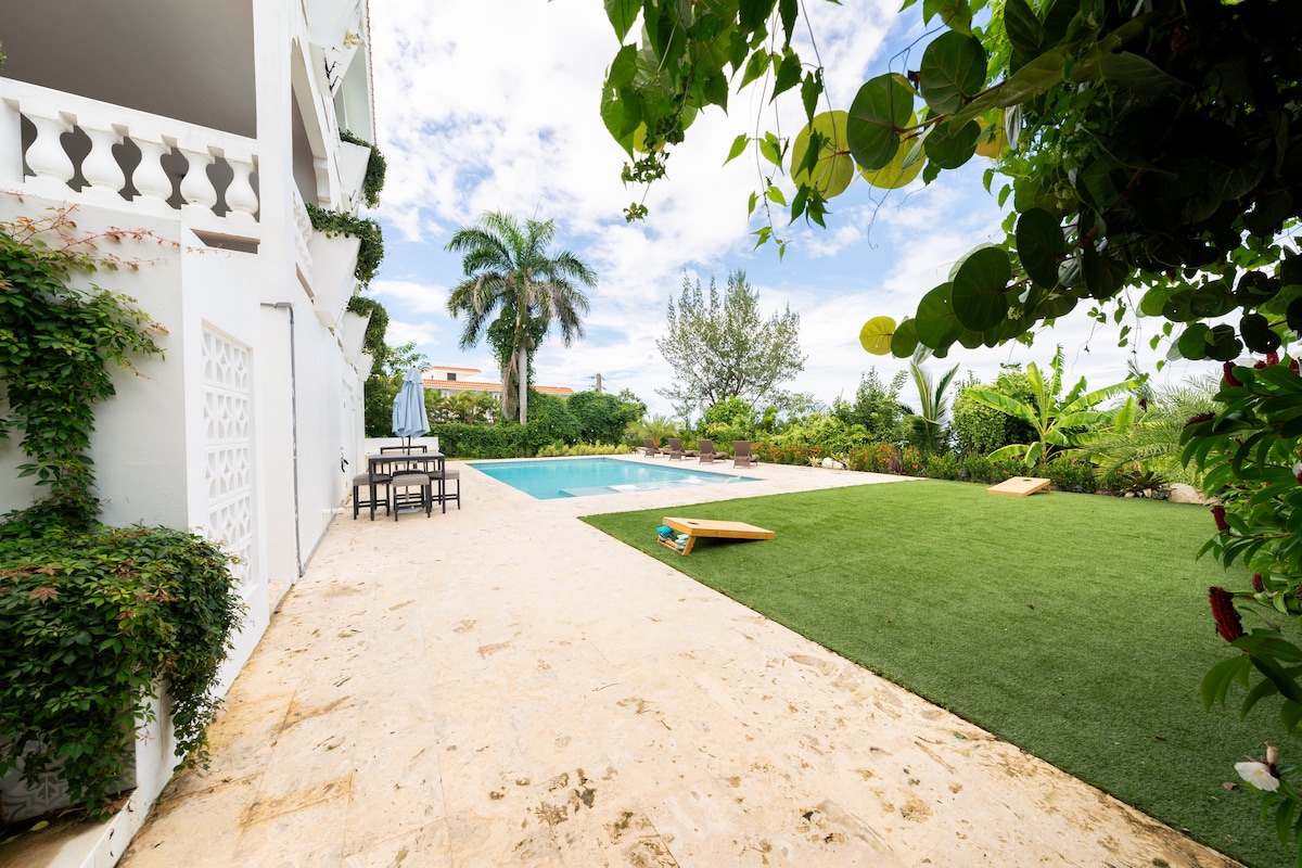 Perfect for large groups with 2 separate apartments and an amazing private pool. Enjoy a stylish experience at this centrally-located villa with privacy and 270 degree ocean views from all four levels, pool to rooftop. Large covered terraces allow contemplation of the ocean on all weather, and the large pool means you never have to go anywhere for fun. The beach is just a short 2 block walk so you can glow back and forth with ease.