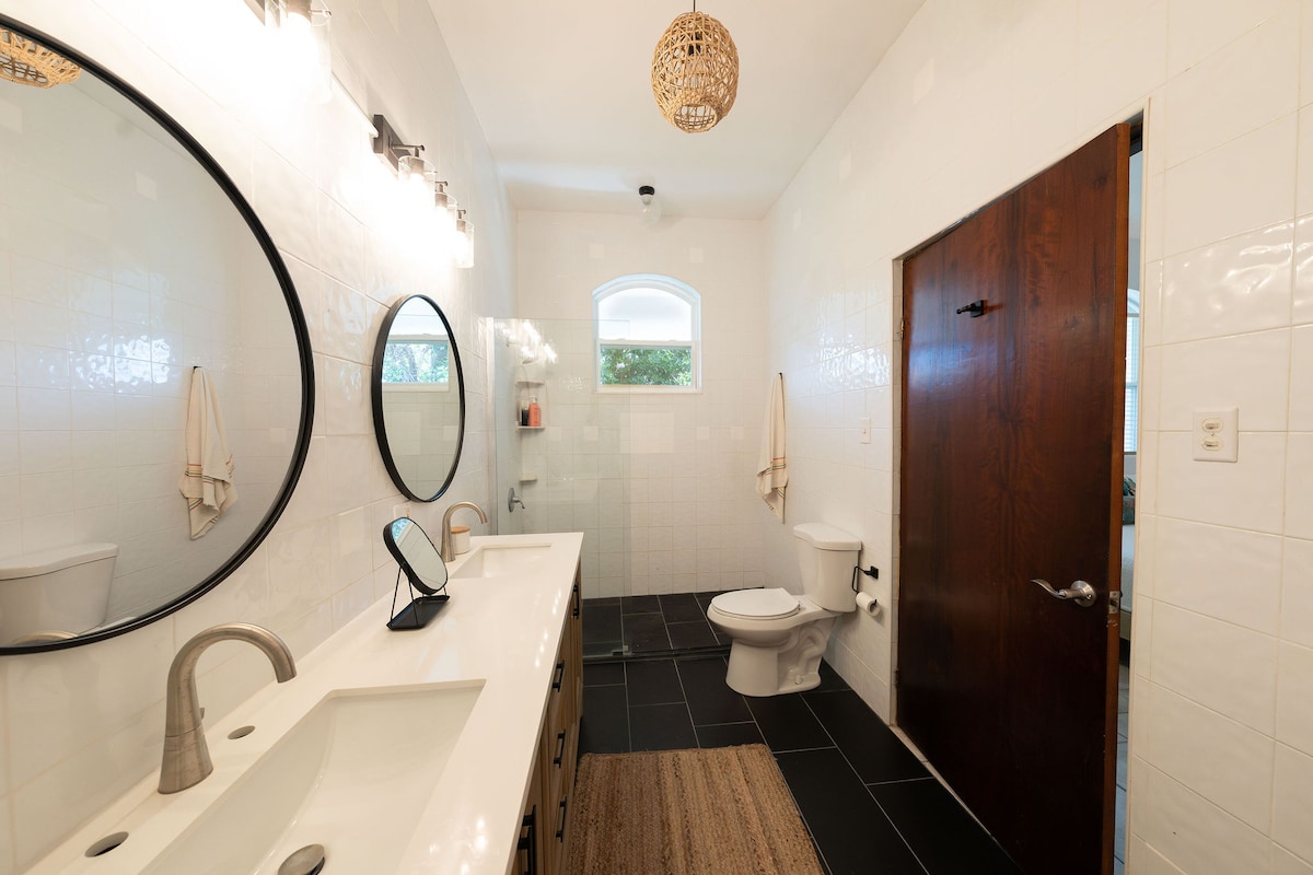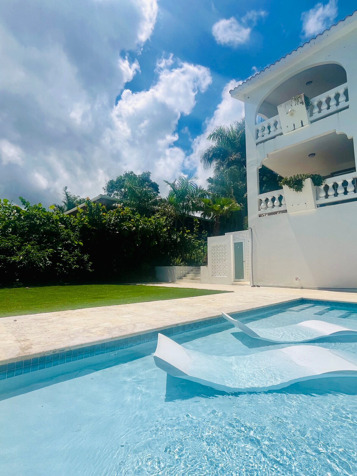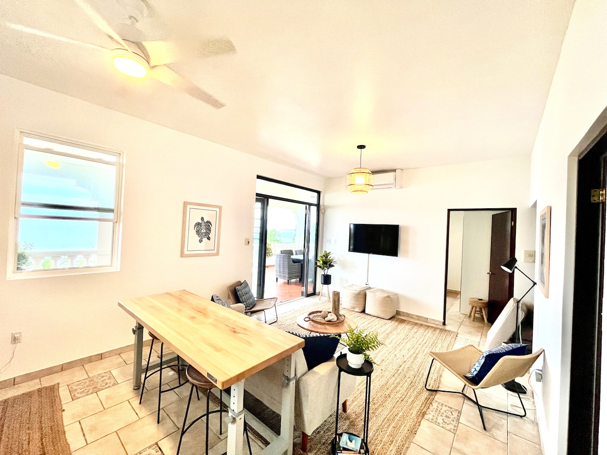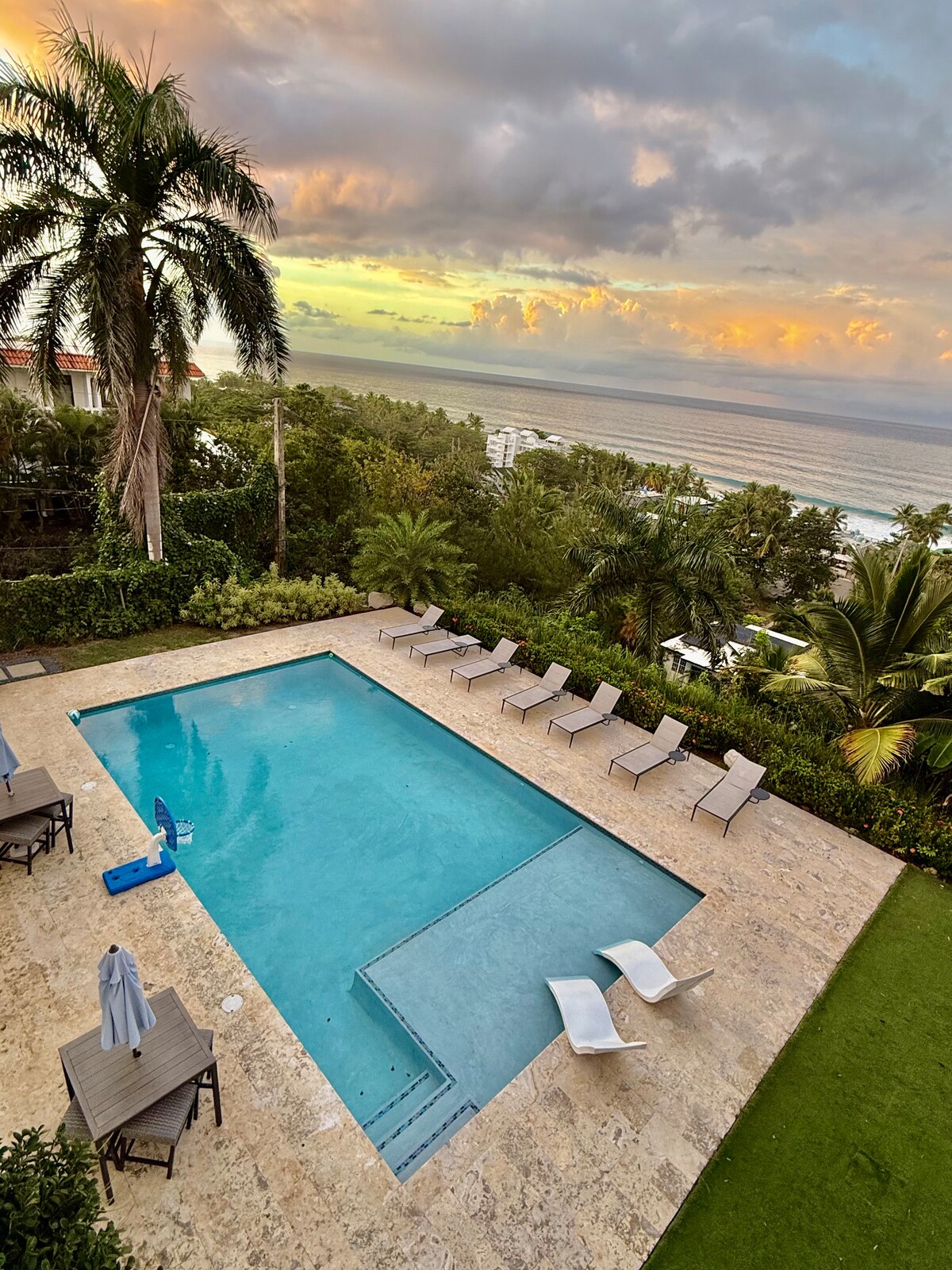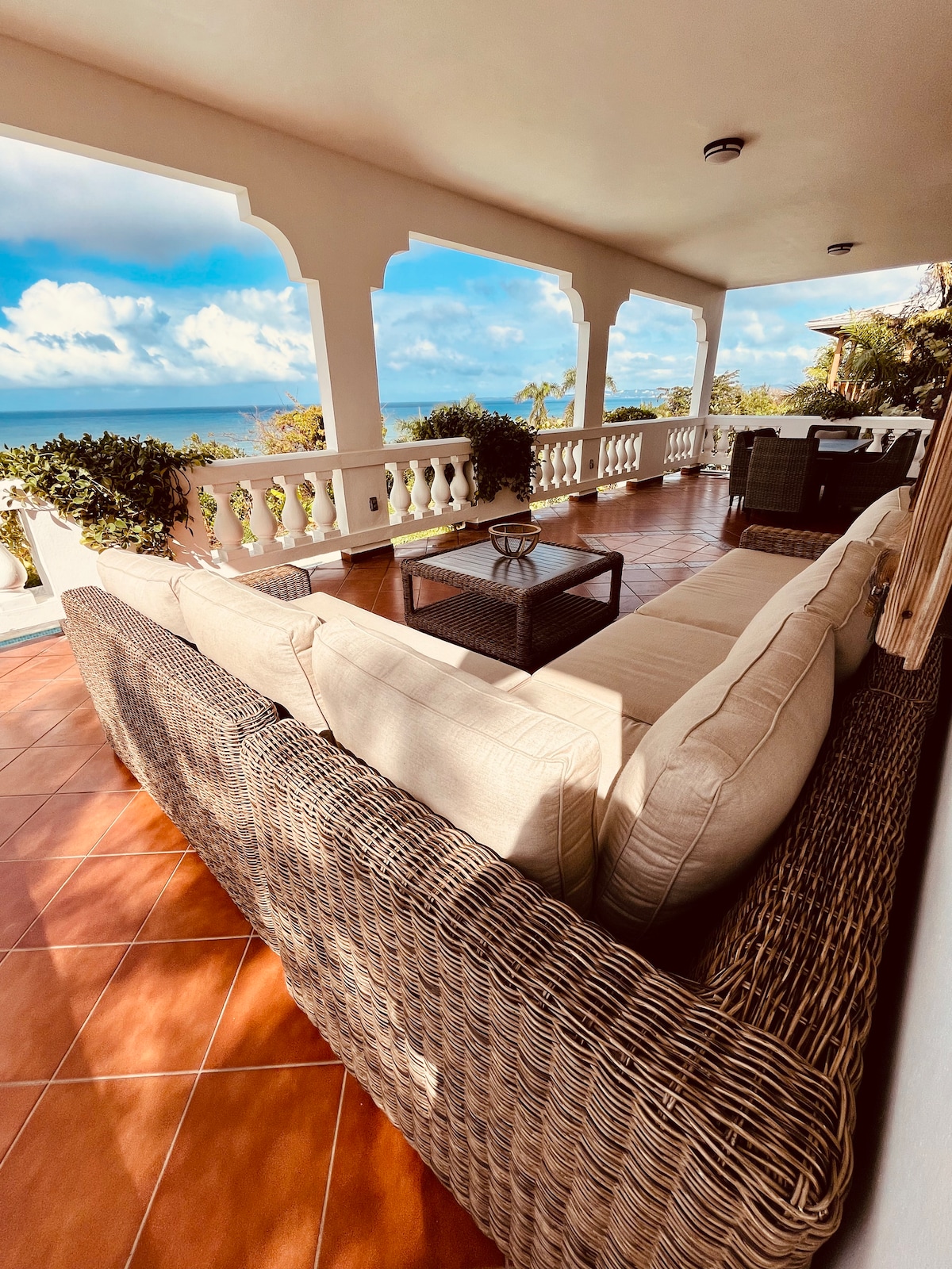 Perfect for large groups with 2 separate apartments and an amazing private pool. Enjoy a stylish experience at this centrally-located villa with privacy and 270 degree ocean views from all four levels, pool to rooftop. Large covered terraces allow contemplation of the ocean on all weather, and the large pool means you never have to go anywhere for fun. The beach is just a short 2 block walk so you can glow back and forth with ease.